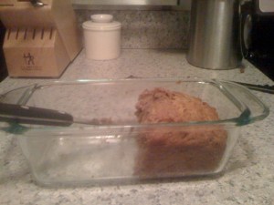 Most days, I’m an oatmeal kind of girl.  But on Saturday mornings in the depths of a New York City winter, I crave banana bread, lightly toasted and covered in peanut butter.  When I made the change to a more vegan-ish existence, my first concern was to find a banana bread recipe that would satisfy.  I’ve been told by more than one omnivore that this one will pass for the real deal.  The bonus?  It’s low in sugar and has very little oil.  You can’t taste the flavor of the applesauce in the finished product; it just helps with the density.  The brandy is a fun addition… I like finding ways to incorporate booze into weekend breakfast!