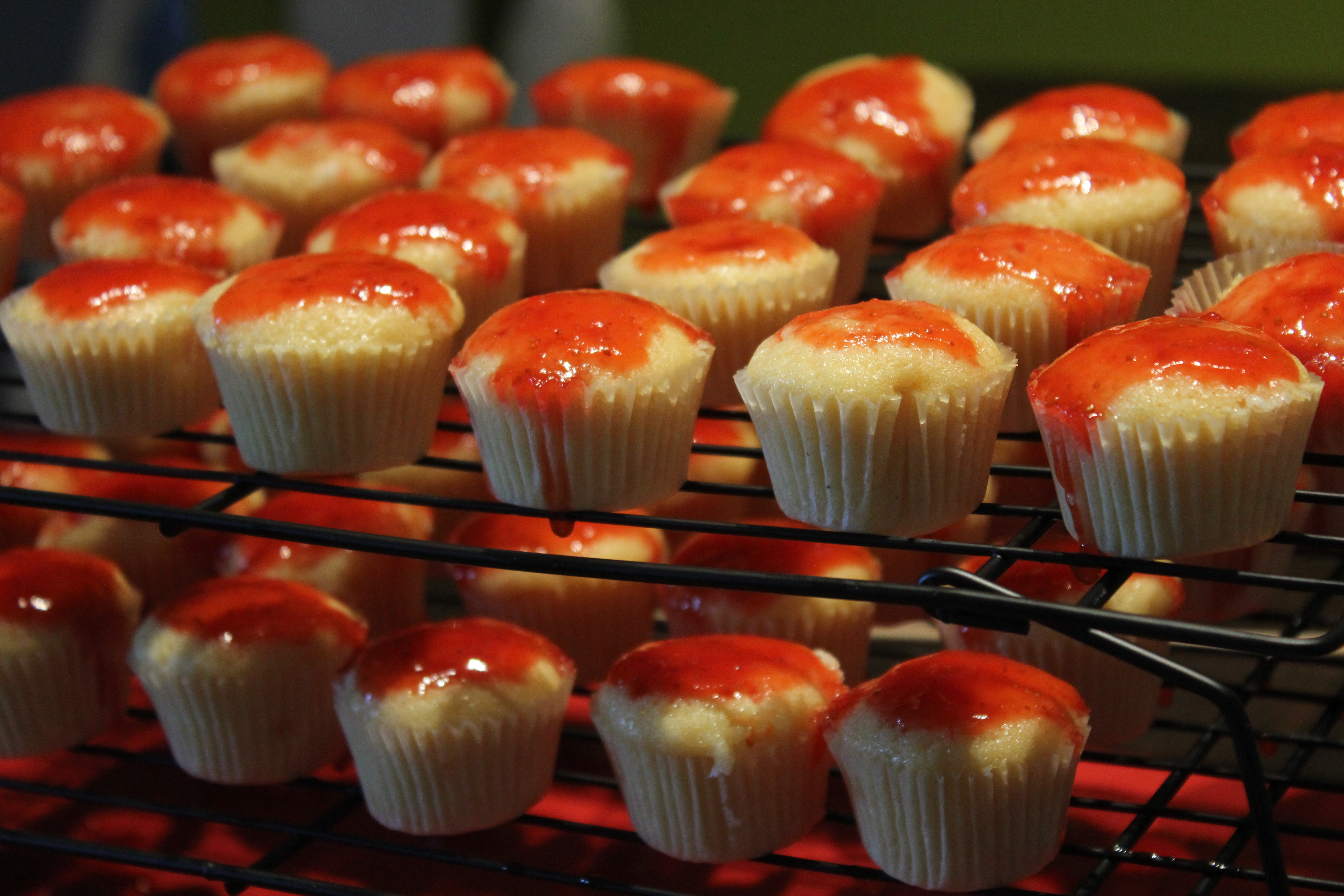 - 1 batch yellow butter cake cupcakes (recipe courtesy of Martha S tewart here) baked as mini cupcakes