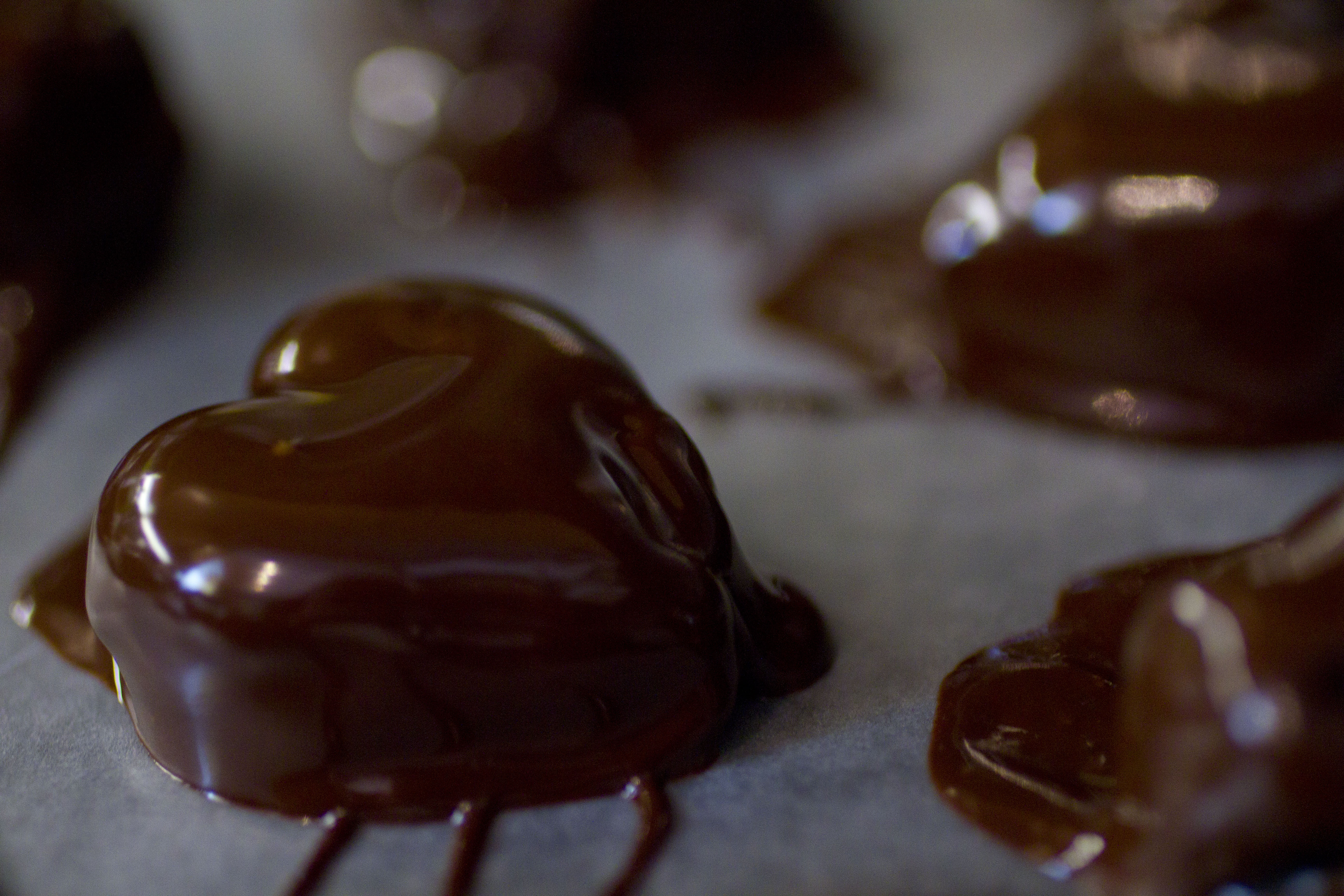 These chocolate covered jellies are an experiment in bringing together an assortment of seemingly unrelated flavors and turning it into a party in your mouth. Plus, with the dark chocolate outside and the bright sriracha inside, they sort of look like a volcano.