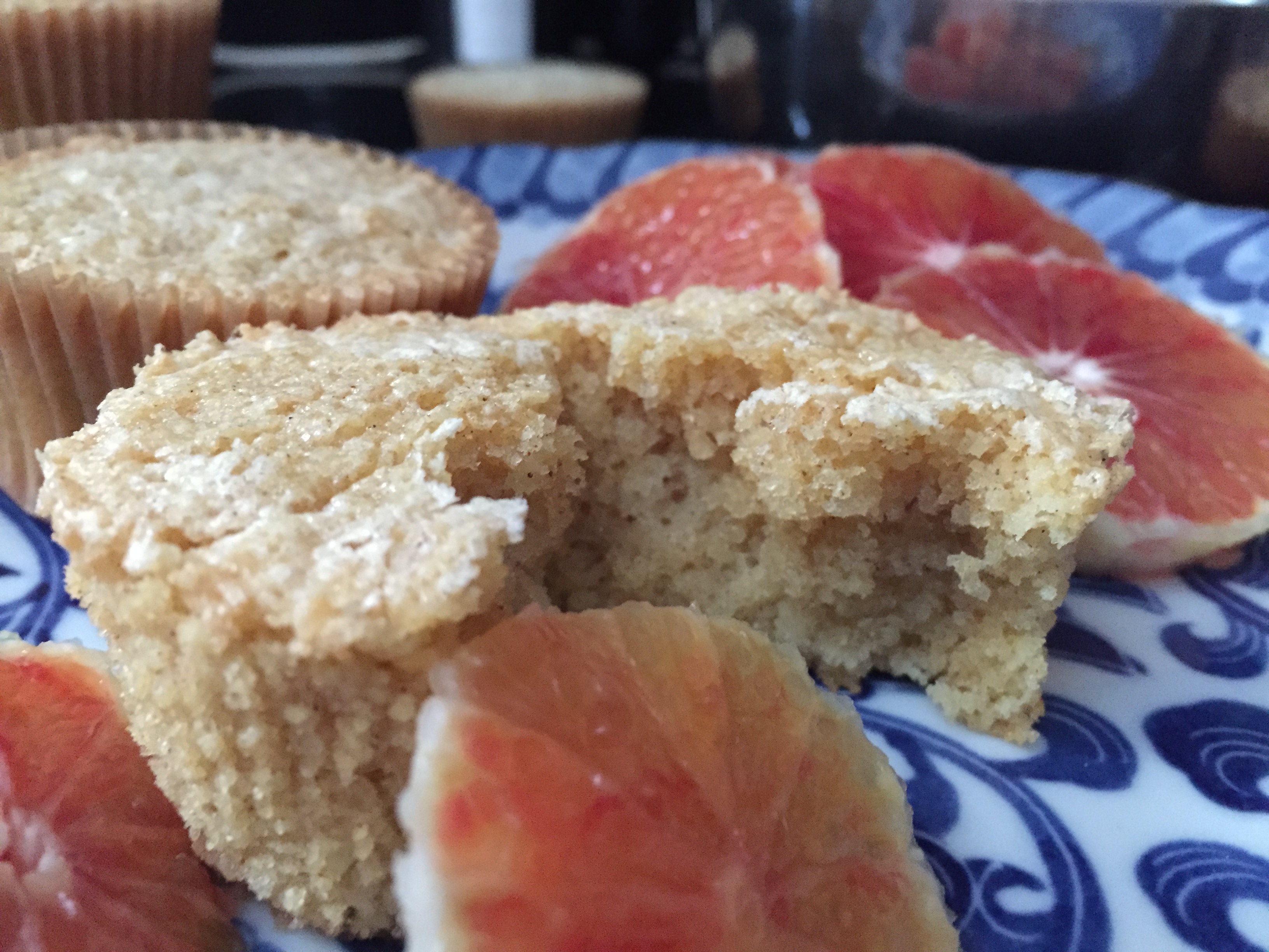 Preheat oven to 325 degrees. In a medium bowl, beat eggs with sugar until light and thick. Add almond flour, cinnamon, extract and zest and beat until smooth. Spoon into mini cupcake tins (makes 20-24) or standard cupcake tins, (makes 8) lined with papers. Fill each cup about ⅔ full. Bake for 30 minutes until firm and slightly golden. Cool slightly and remove from pans gently since they compress easily.